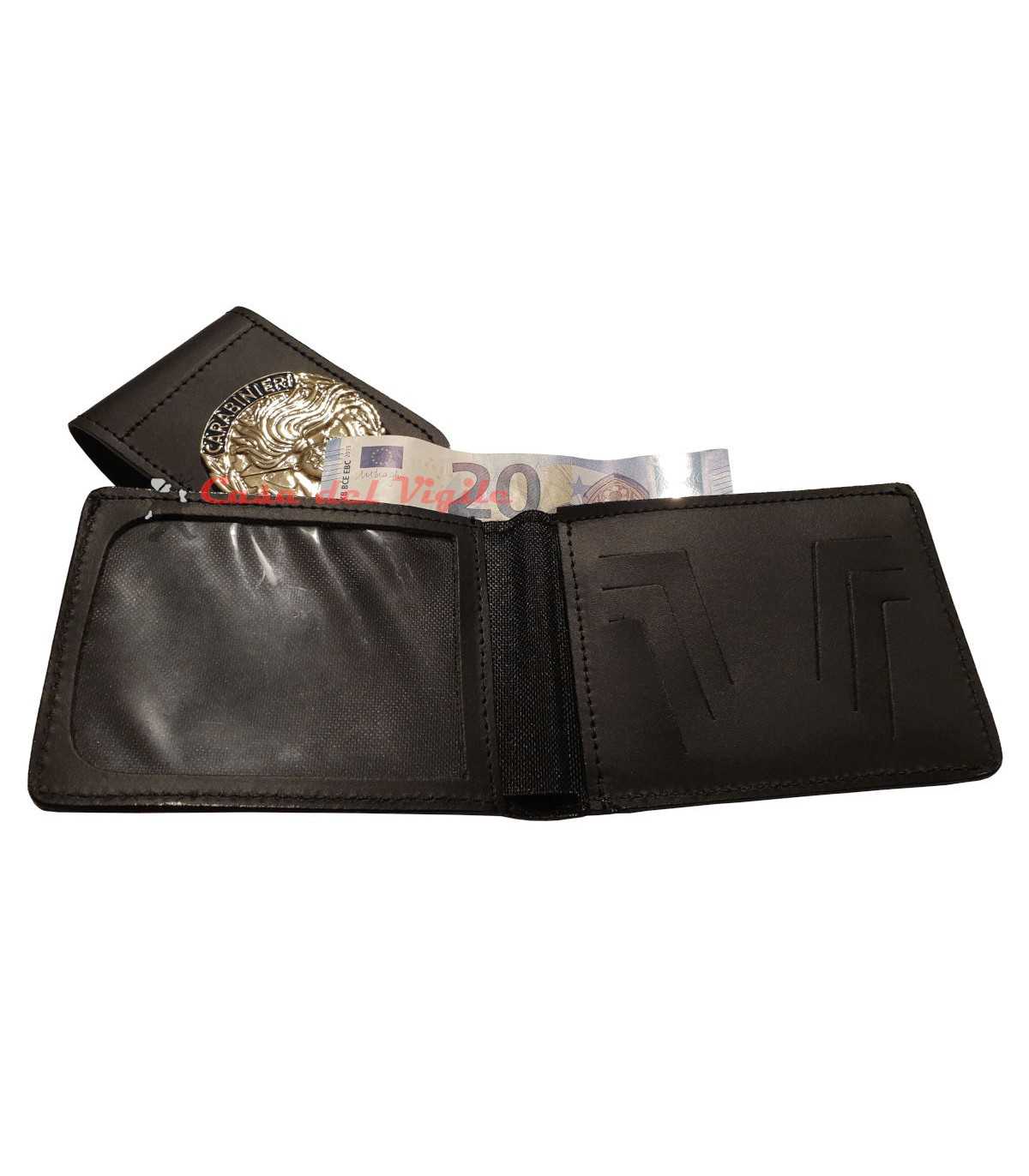 Portafoglio orizzontale in cuoio Carabinieri con placca Argento oppure Oro