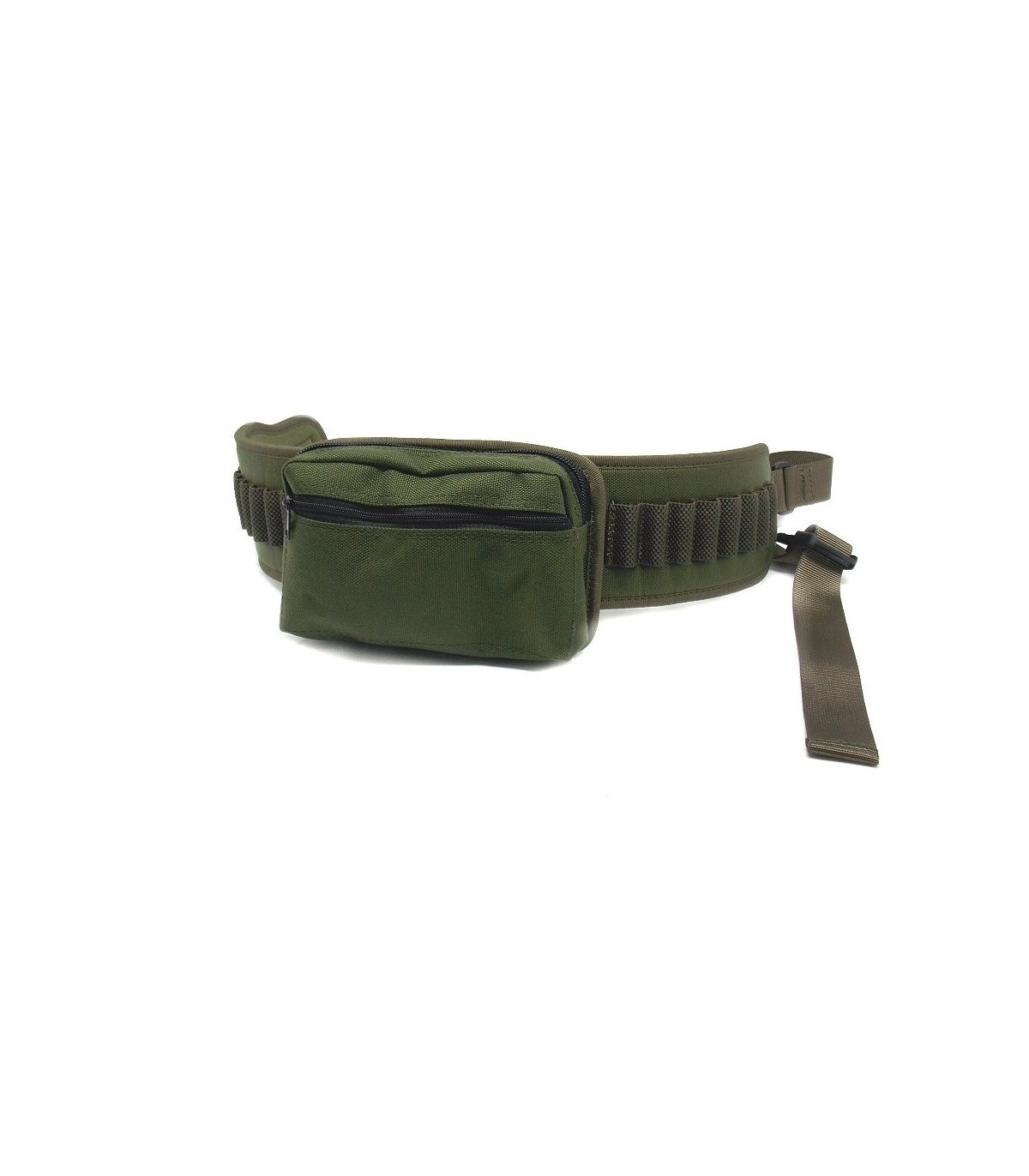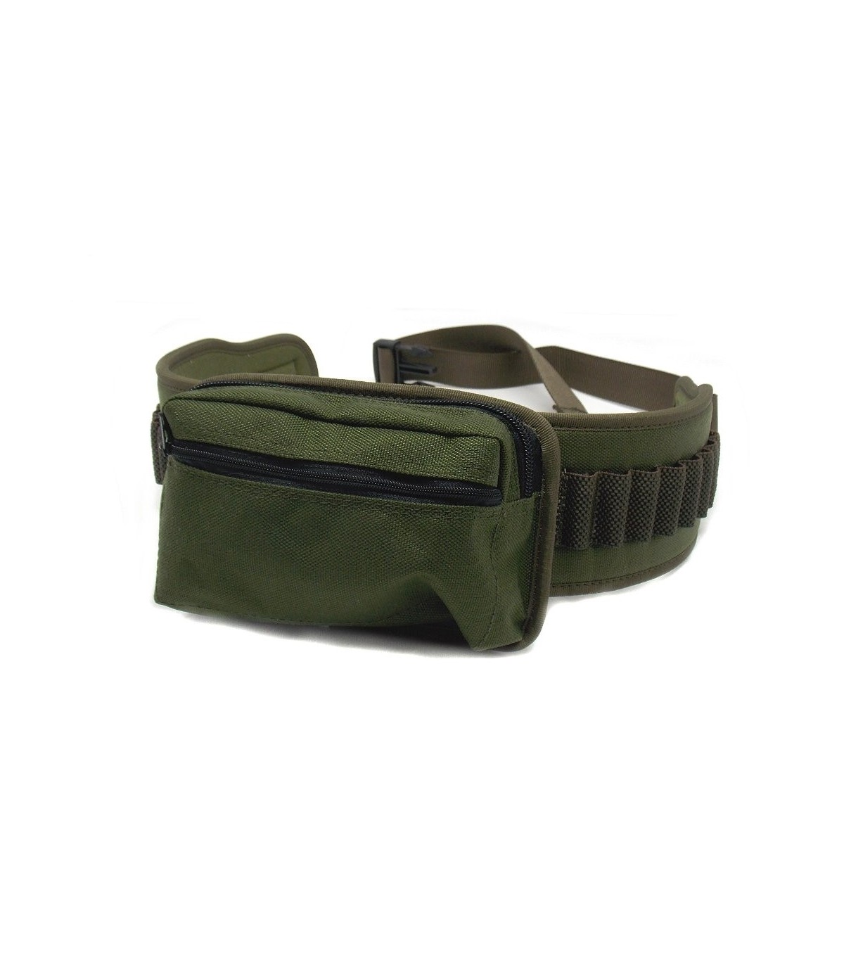 Cartuccera in cordura verde con 16 celle elastiche con tasca centrale con due cerniere
