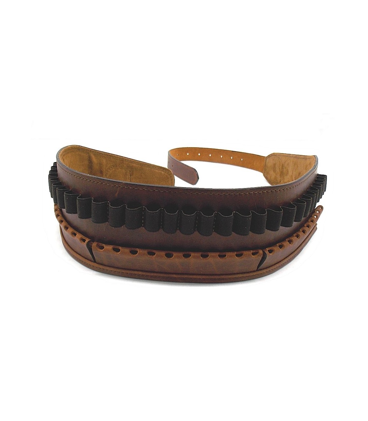 Cartuccera porta cartucce carabina in cuoio ingrassato marrone con celle elastiche e protezione palla