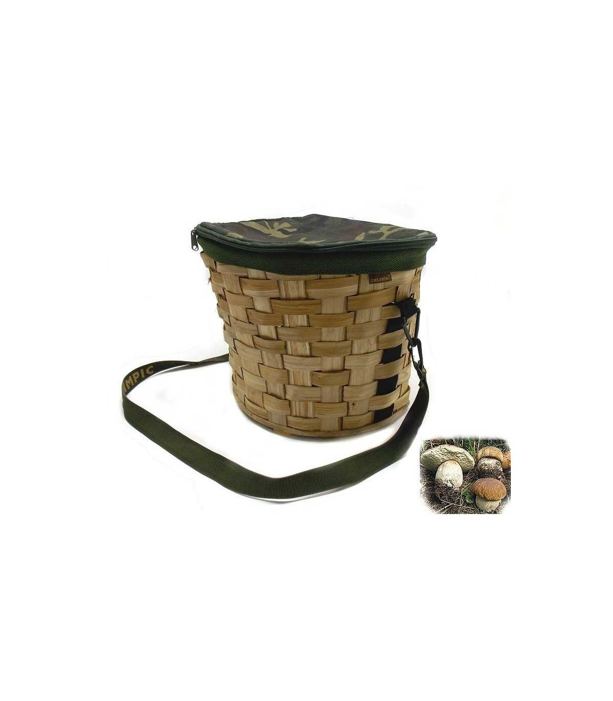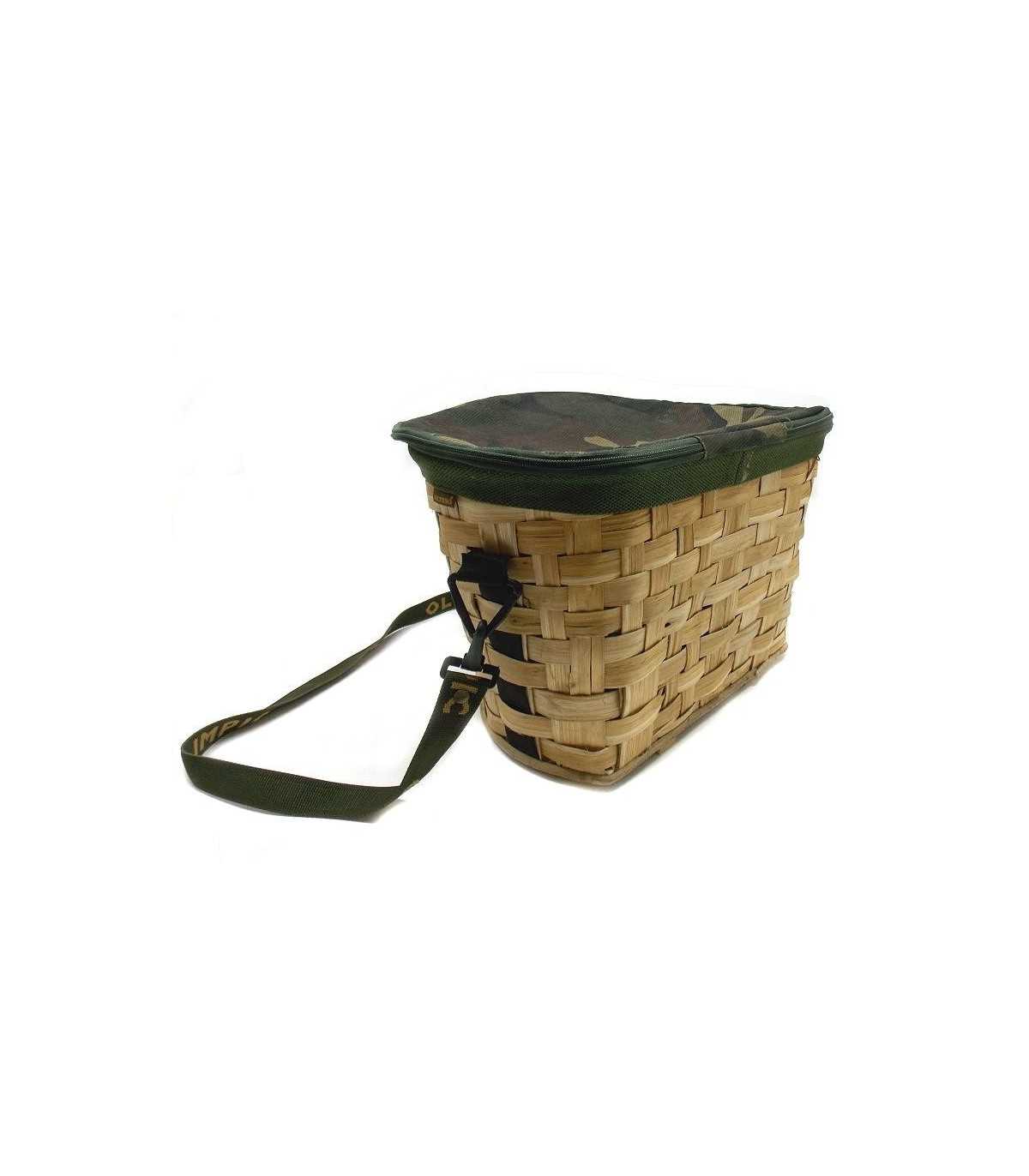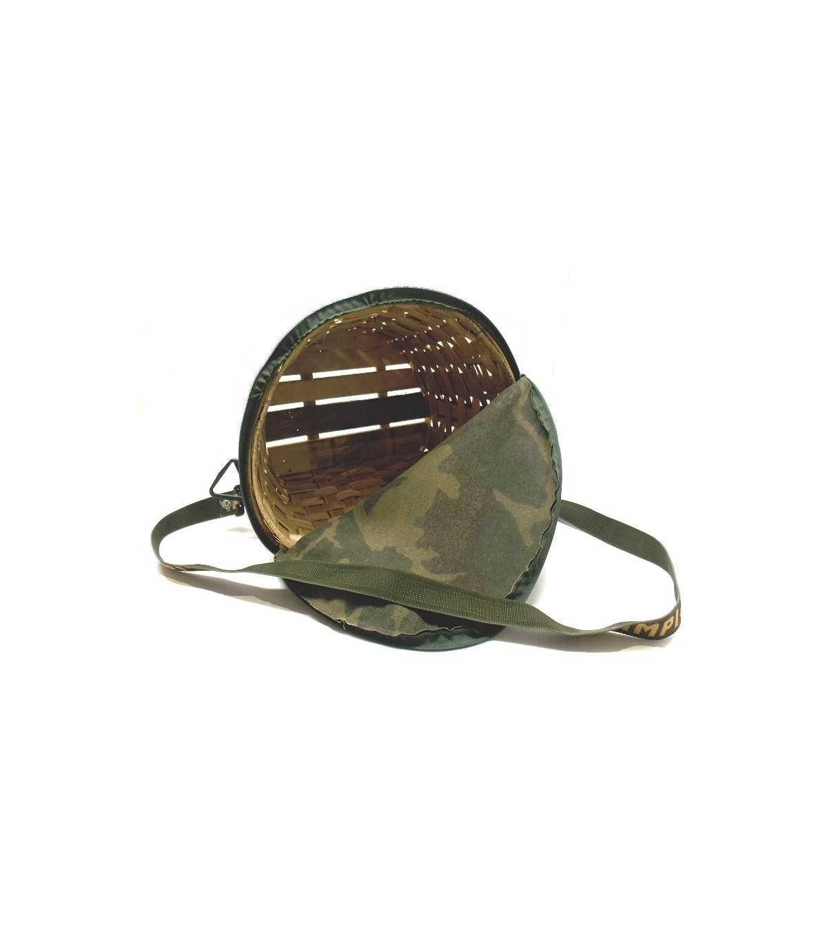 Cesta in legno di pioppo mezzo ovale con pattina di chiusura in tela mimetica e chiusura con cerniera