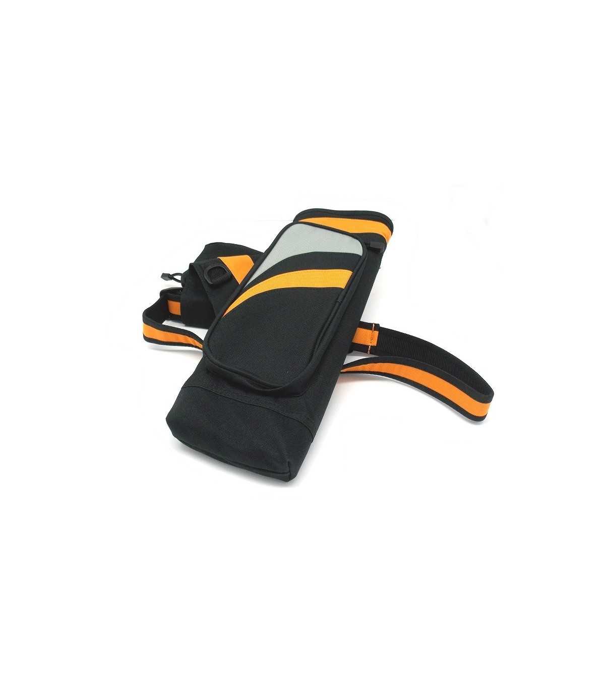 Faretra in tela nera con inserti arancioni e grigi