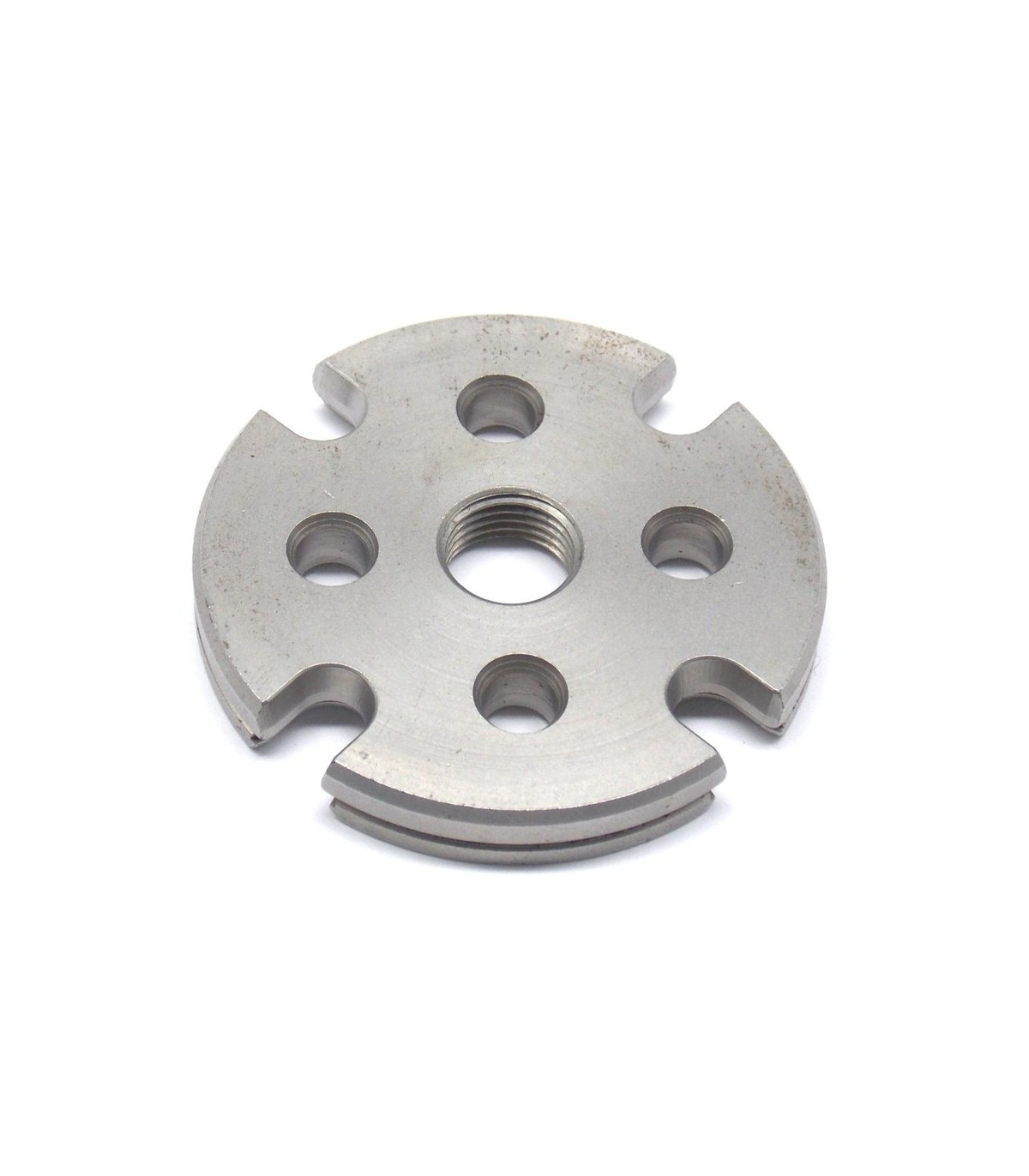 Piastra 4 fori in metallo portabossoli che consente di cambiare rapidamente il calibro delle munizioni ricaricate con la pressa pro 4000 Lee.
