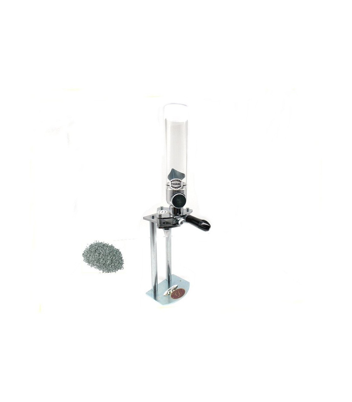 Questo dosatore permette di effettuare pesate della polvere sempre più precise e costanti grazie al sistema di svuotamento del serbatoio ed avanzamento millesimale micrometrico